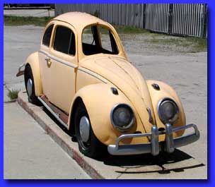 A "modified" VW in front of repair shop on East 4th Street July 2001